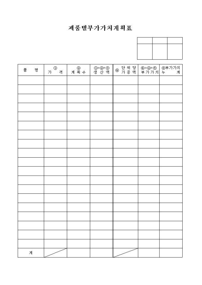 부가가치 계획표(제품별)