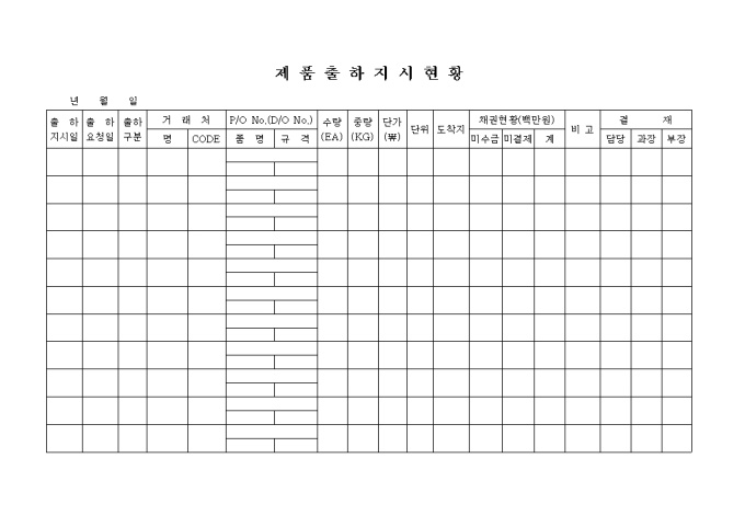 제품 출하지시 현황