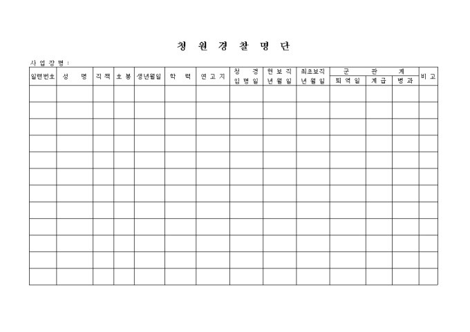 9,000원/월청원 경찰의 인적사항을 기록하는 양식입니다.