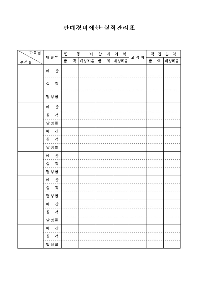 판매경비예산, 실적관리표