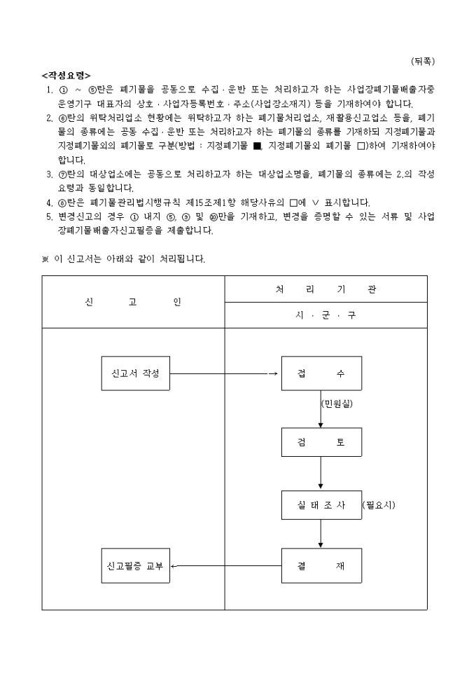 폐기물관리법 제24조제2항 및 동법시행규칙 (□ 제10조제2항/□ 제10조제4항)의 규정에 의하여 사업장폐기물배출자의 (□ 신 고/□ 변경신고)하실때 사용하는 양식입니다.