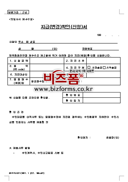 수출대금 미회수처리(추심기간연장) 인정(신청)서 양식입니다. ... 확 인 조 건 수입대금을 선적서류 또는 물품영수전에 지급한 경우에는 수입완료후 지체없이 수입사실을 입증하는 서류를 제출할 것 확인권자 : 은행장(인) ※ 제출서류 별첨 - 수입계약서, 수입신고필증 사본 등