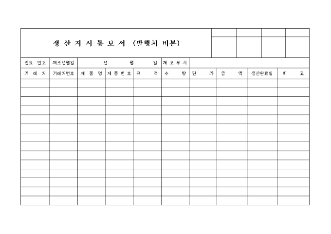 9,000원/월생산지시통보서 (발행처 비본) 양식입니다.
