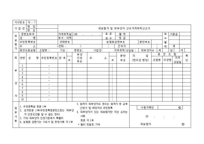 피보험자 및 피부양자신규자격취득신고서