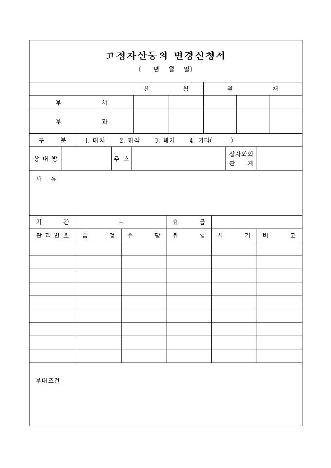 고정자산등의변경신청서 양식입니다.