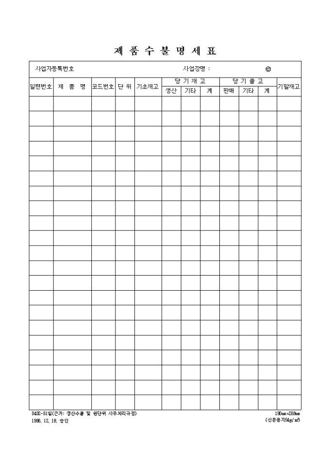 9,000원/월재품의 출고와 재고의 현황을 기록하는 양식입니다.