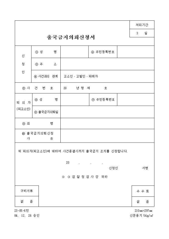 출국금지의뢰 신청서