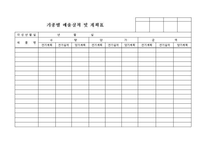 제품별 수량,단가,금액의 세부항목으로 구성된 양식입니다.