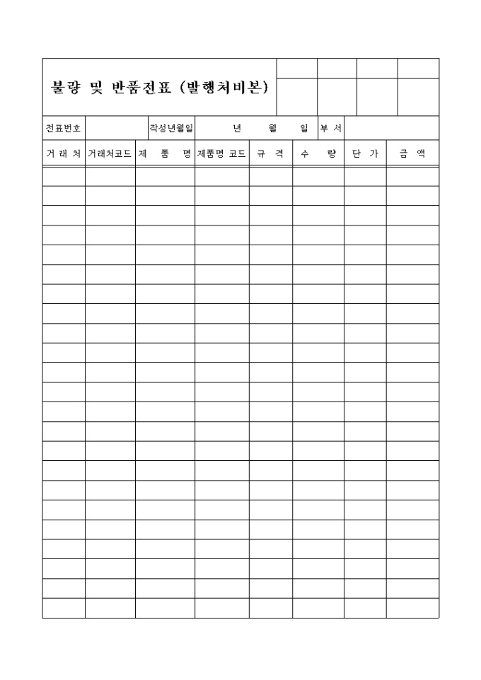 9,000원/월불량 및 반품 품목을 거래처별로 기재하는 양식입니다.