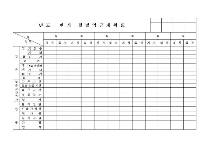 6개월간의 임금계획을 작성하실때 사용하시는 양식입니다.