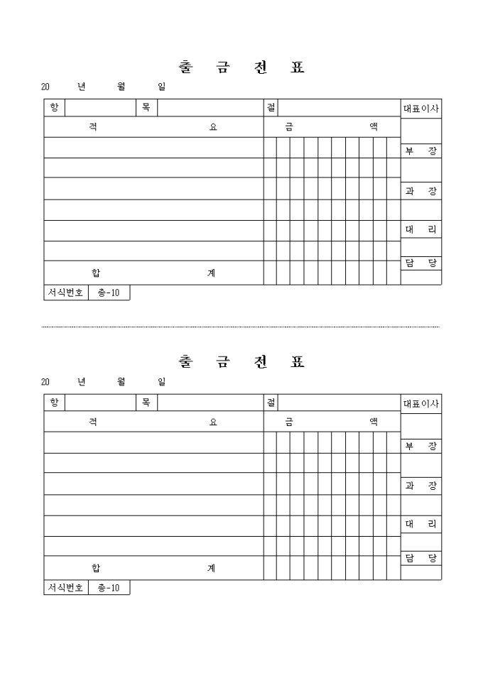 적요와 금액만으로 구성된 간략한 출금전표 양식입니다.
