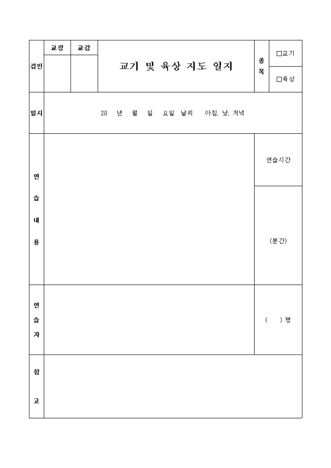 9,000원/월연습내용,연습시간,연습자를 기록하는 교기 및 육상지도일지입니다.