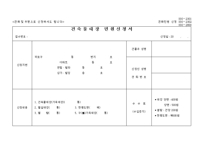 건축물대장 민원신청서