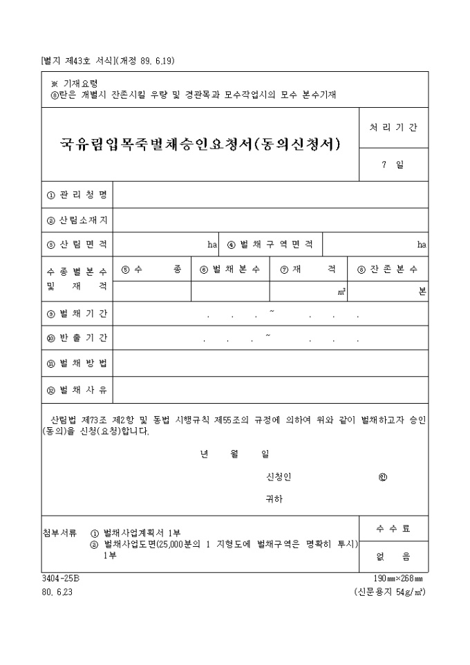 국유림입목죽벌채 승인요청서(동의신청서)
