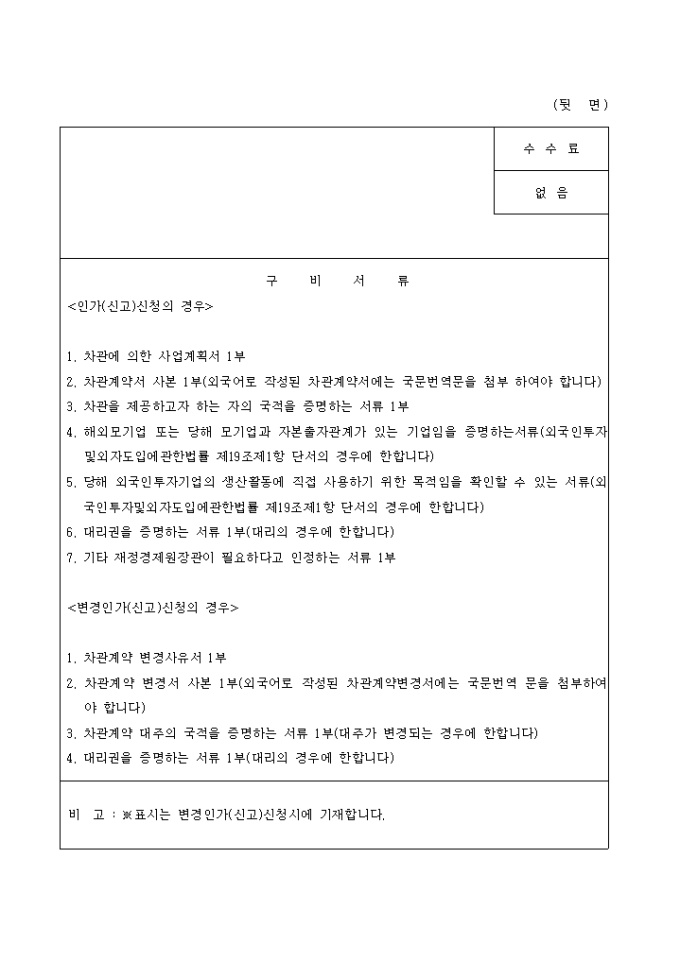 차관계약(인가신청서(신고서), 변경인가신청서(변경신고서))