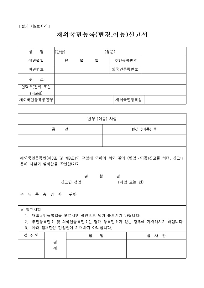 재외국민등록(변경, 이동)신고서