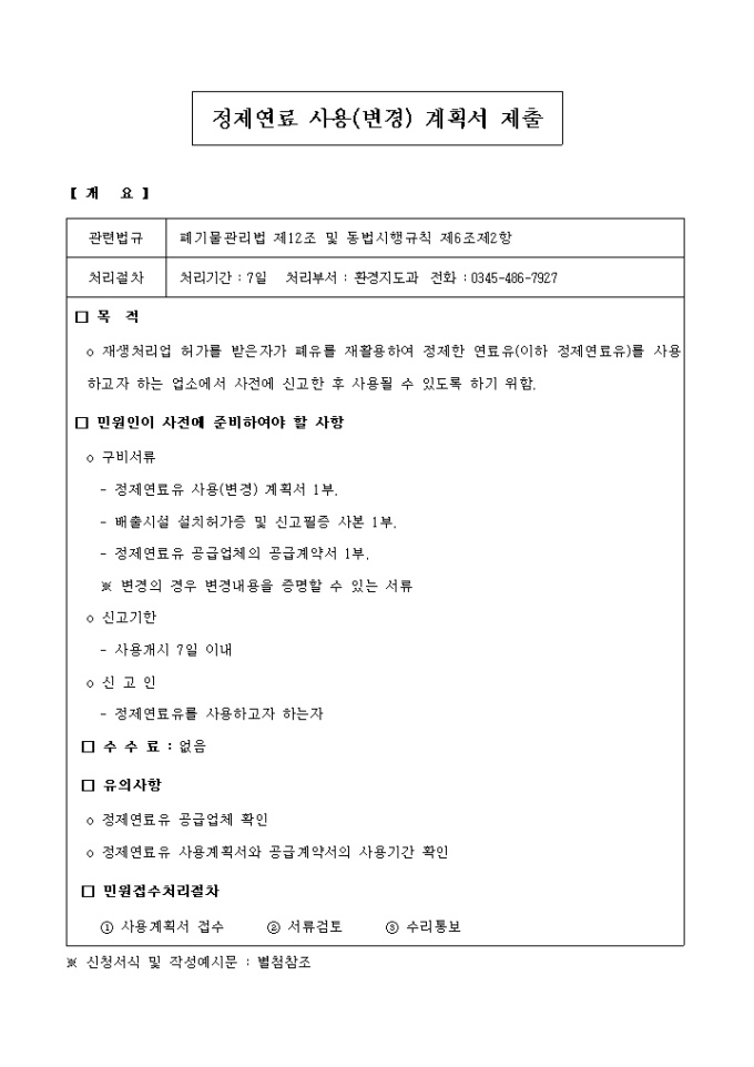 폐기물관리법-정제연료사용(변경)계획서제출 입니다.