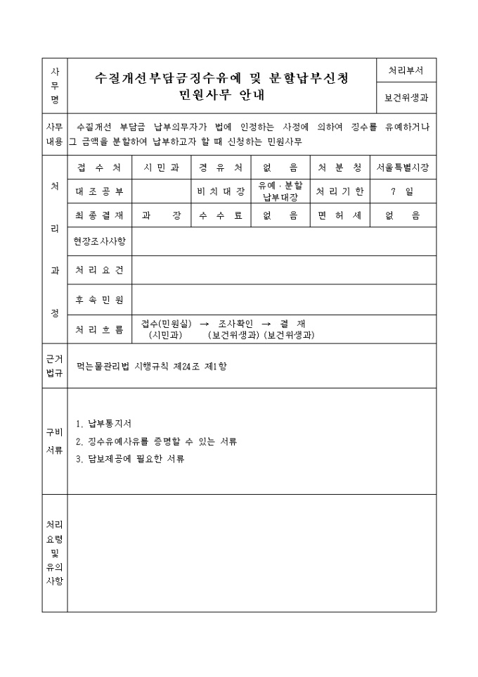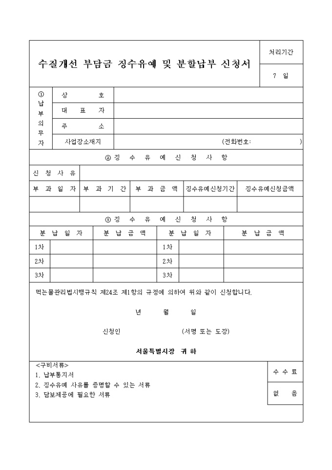 수질개선부담금징수유예 및 분할납부신청서