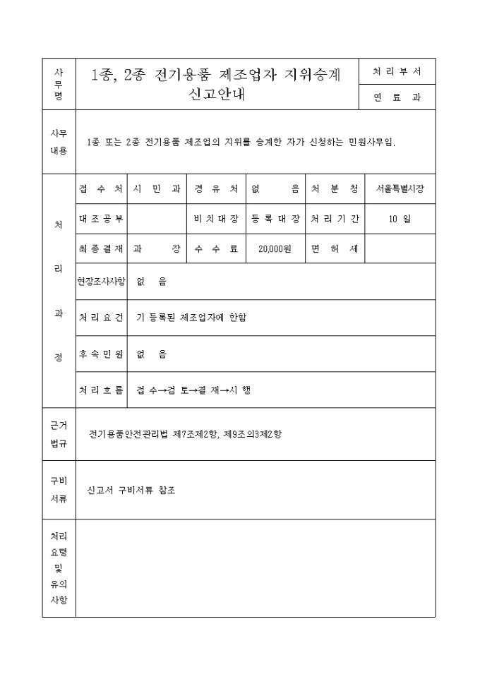 1종, 2종전기용품제조업자지위승계신고서