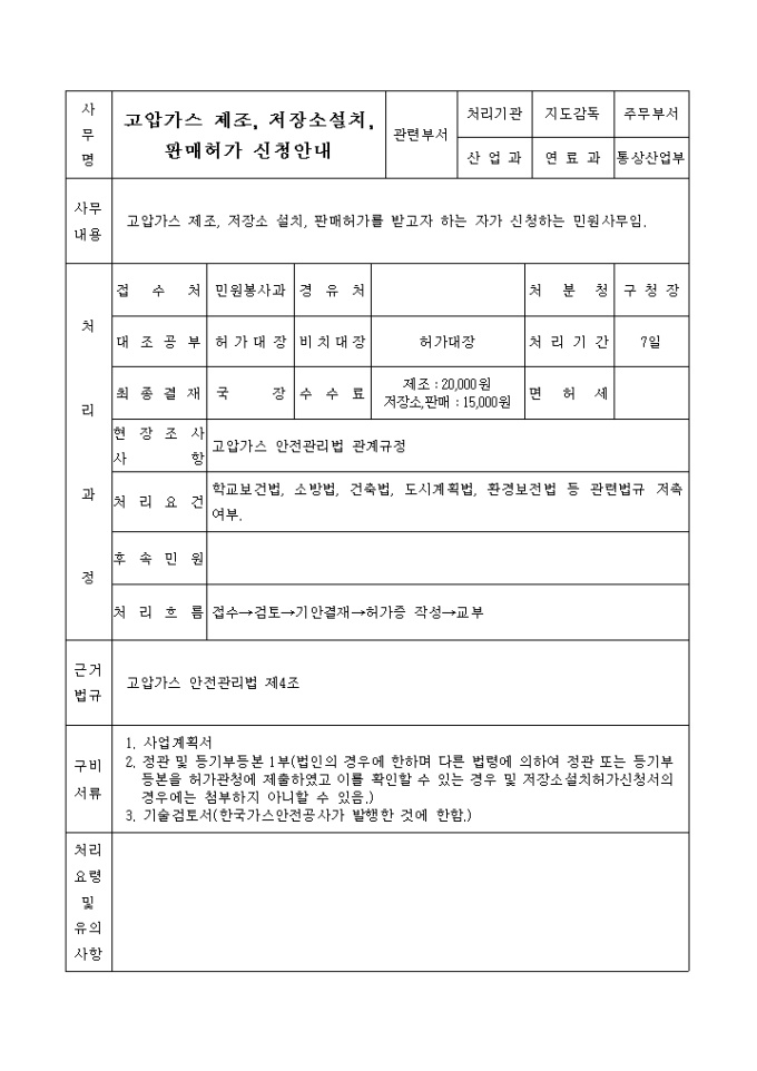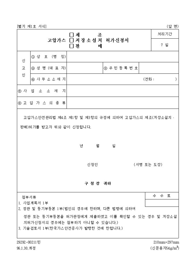 고압가스(제조, 저장소설치, 판매)허가신청서