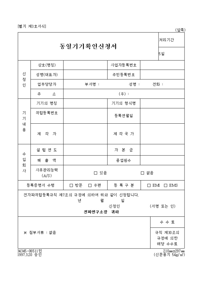 9,000원/월동일기기 확인신청서 양식 예제입니다.
