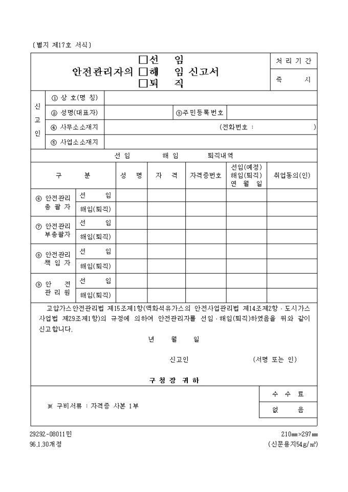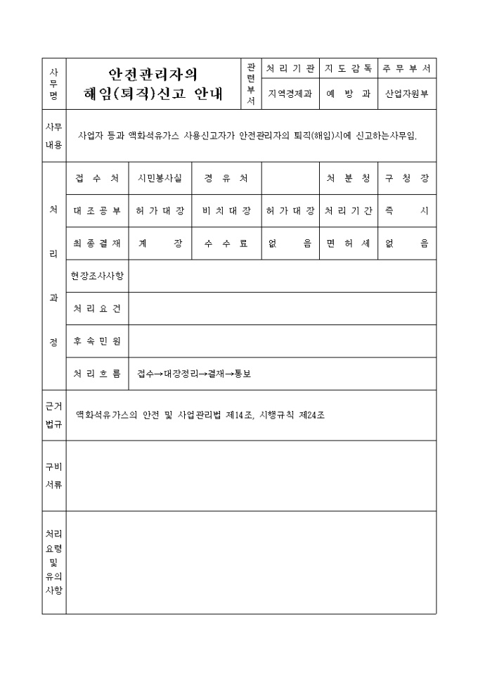 액화석유가스안전관리자의선임, 해임, 퇴직신고서
