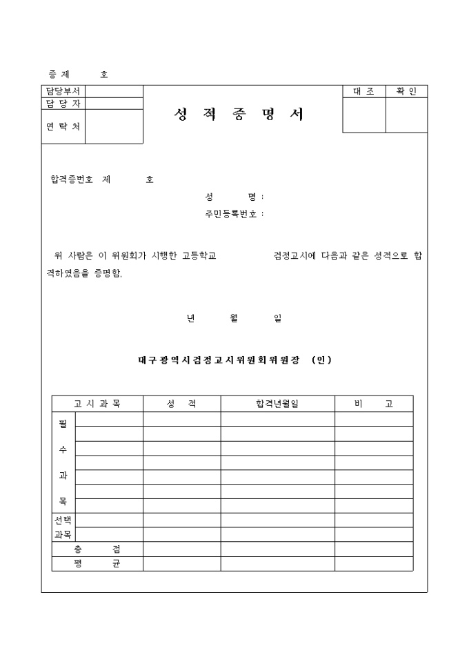 고입.고졸검정고시 성적증명서