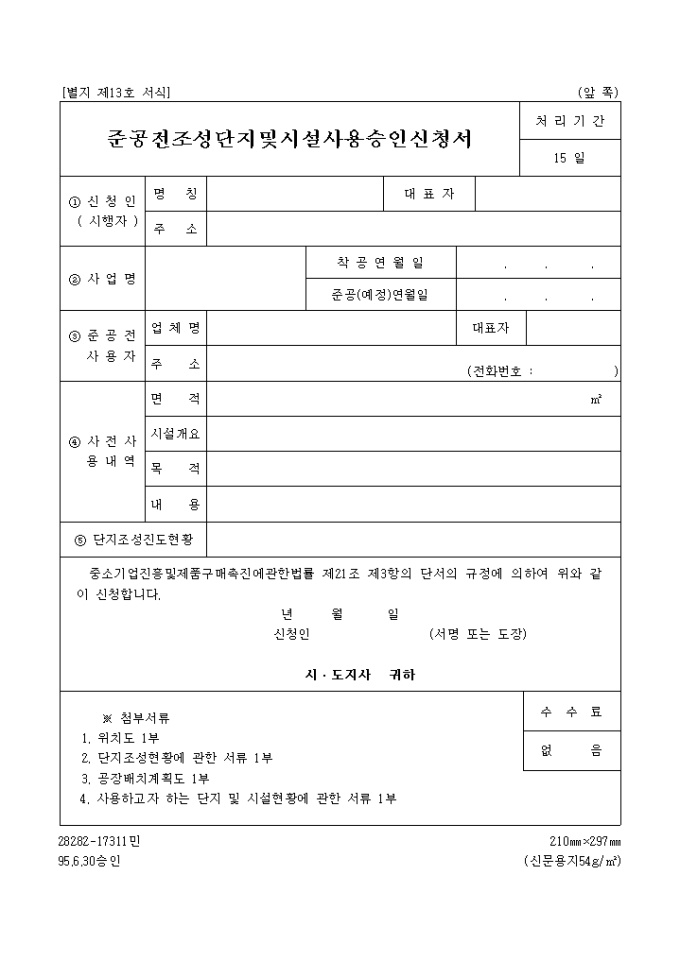 준공전조성단지 및 시설사용승인신청서