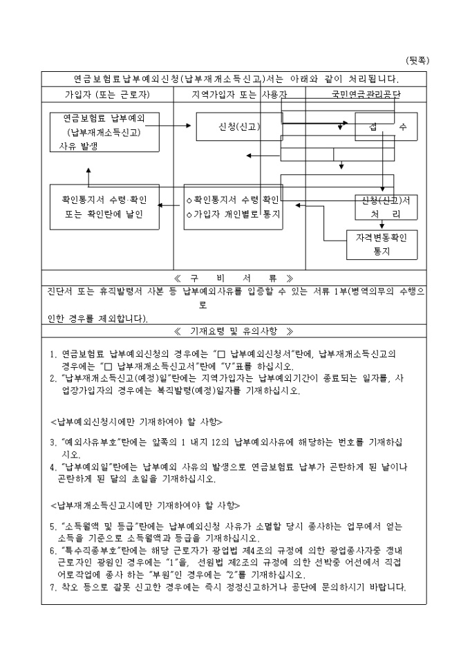 연금보험료(납부예외신청, 납부재개신고)서