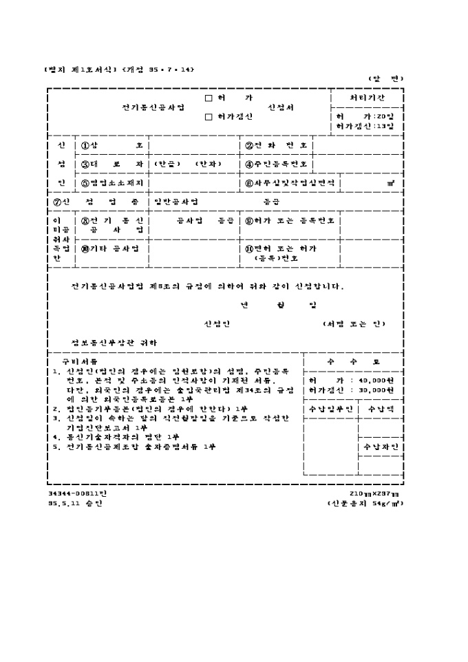 전기통신공사업법 제6조의 규정에 의하여 위와 같이 신청합니다.