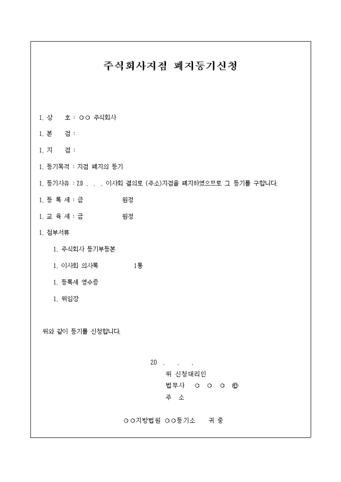 9,000원/월주식회사 지점의 폐지하여 그 등기를 구할때 사용하는 양식입니다.