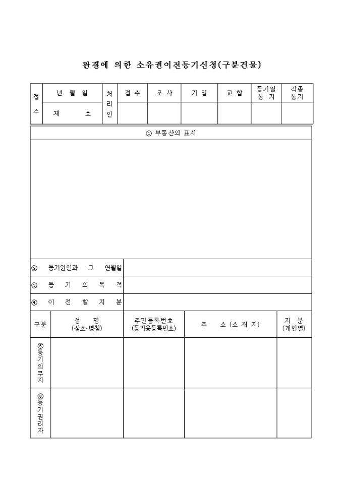 9,000원/월판결에 의한 소유권이전등기신청(구분건물) 입니다.