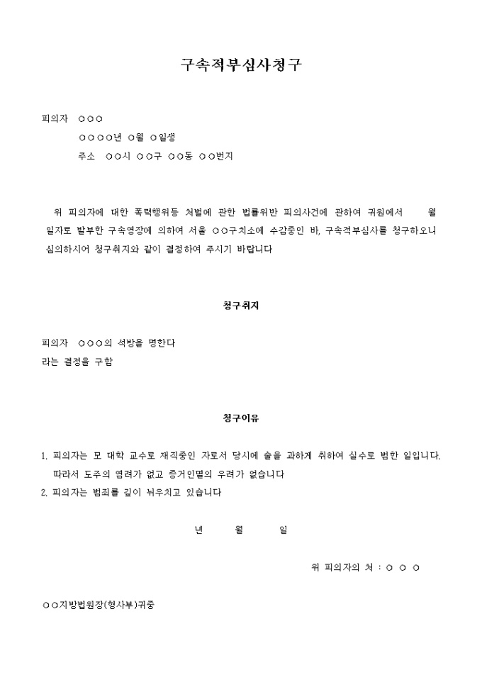 9,000원/월폭력행위등 처벌에 관한 법률위반 피의사건에 관하여 피의자의 석방을 요청할 때 사용하는 양식입니다.