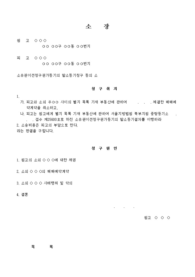 소유권 이전 청구권 등기의 말소 등기 청구에 대한 소송에 사용하는 양식입니다.