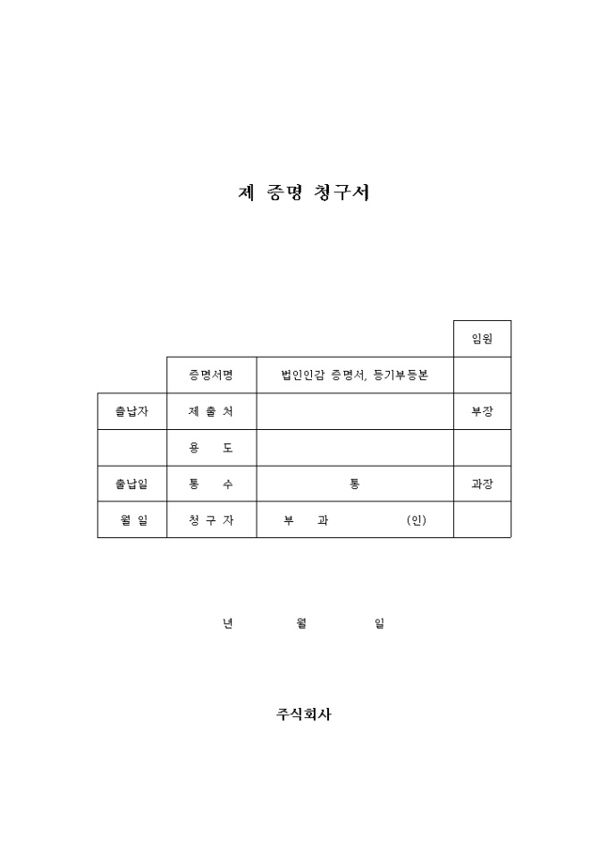 9,000원/월제 증명청구서 양식입니다. 법인인감 증명서, 등기부등본등을 확인시 사용하시는 서식입니다.