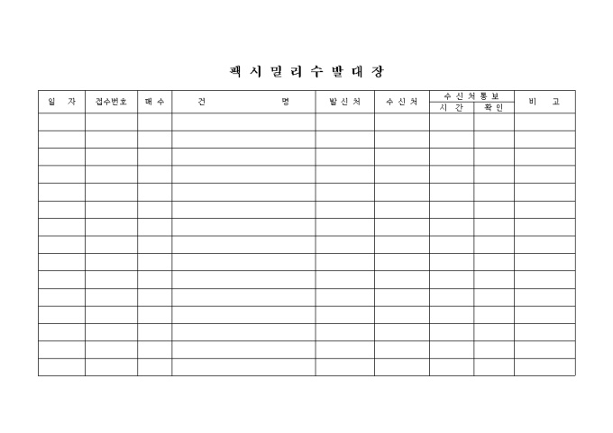 건별 팩스 수신을 기록하는 팩시밀리수발대장 양식입니다.