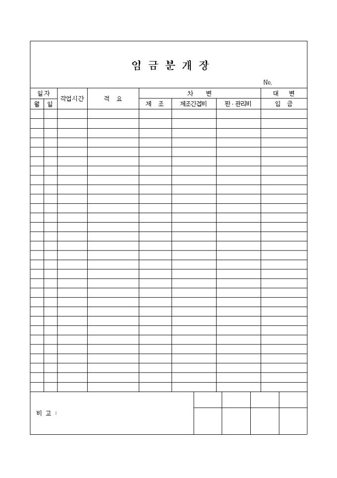 9,000원/월임금을 차변, 대변으로 구분하여 기록하는 양식입니다.