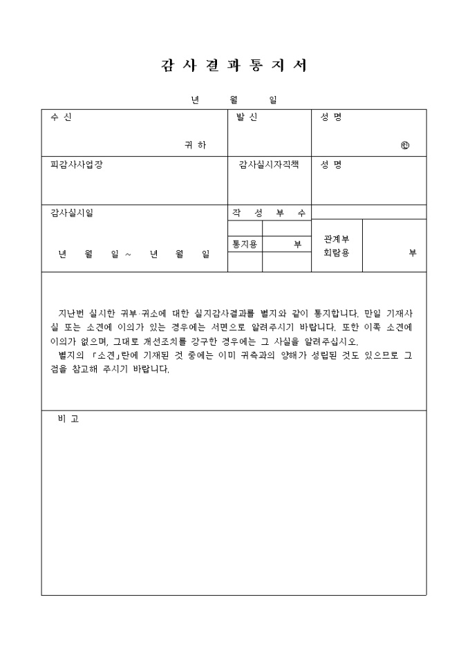 9,000원/월사업장을 감사한 결과를 통지하는 양식입니다.