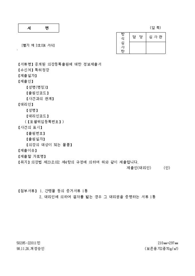 9,000원/월공개된 의장등록 출원에 대한 정보제출서 양식 예제입니다.