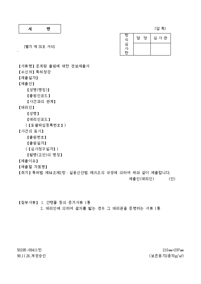 9,000원/월공개된 출원에 대한 정보제출서 양식 예제입니다.