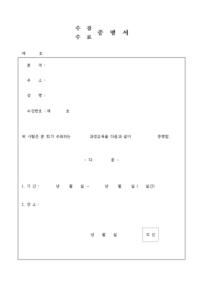 9,000원/월교육과정 이수를 증명하는 수료, 수강 증명서 양식입니다.