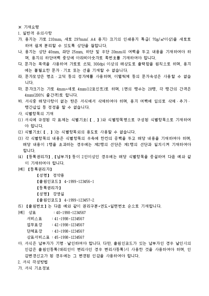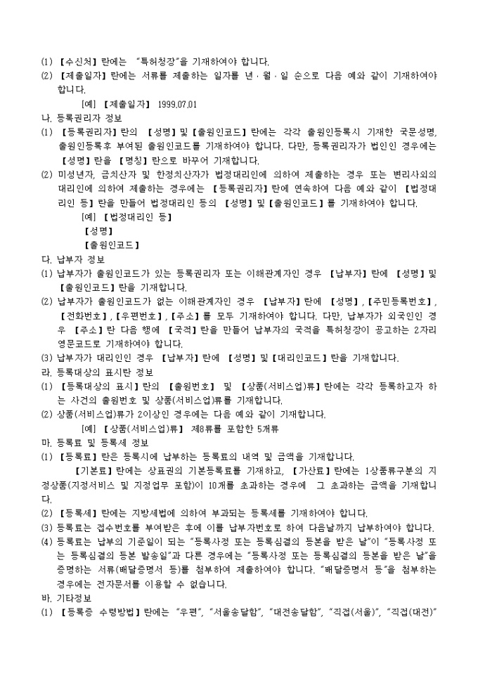 상표(서비스표,상표서비스표,단체표장,업무표장) 등록료 납부서 양식 예제입니다.