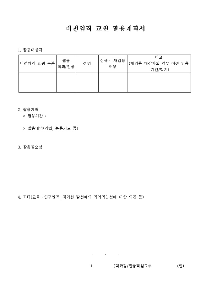 9,000원/월활용대상자,활용계획,활용필요성 등을 기재하는 비전임직교원활용계획서입니다.