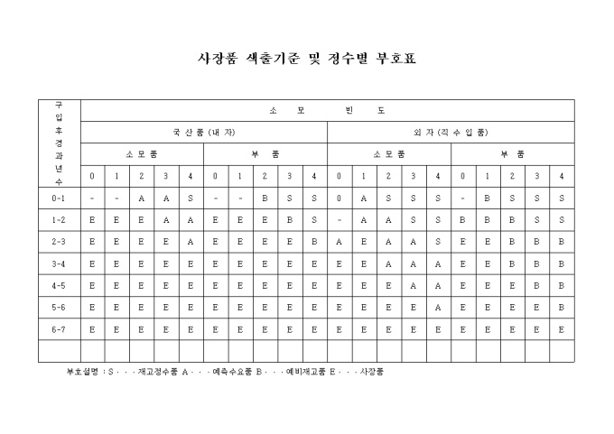 구입후 경과년수별로 소모빈도를 표시한 표입니다.