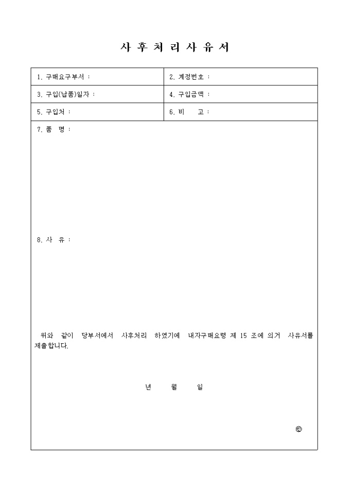 9,000원/월품물의 사후처리 사유를 기록하는 양식입니다.