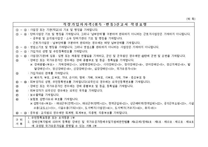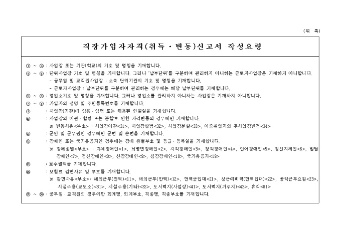 직장가입자자격(취득·변동)신고서(피부양자가 없는 경우) 양식입니다.