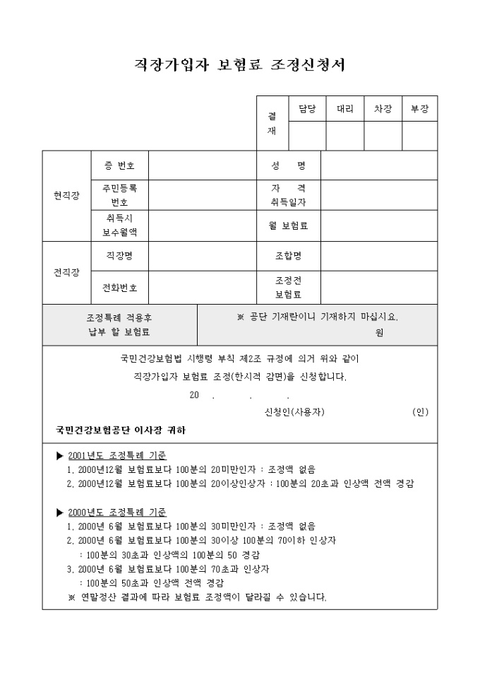 직장가입자 보험료조정신청서