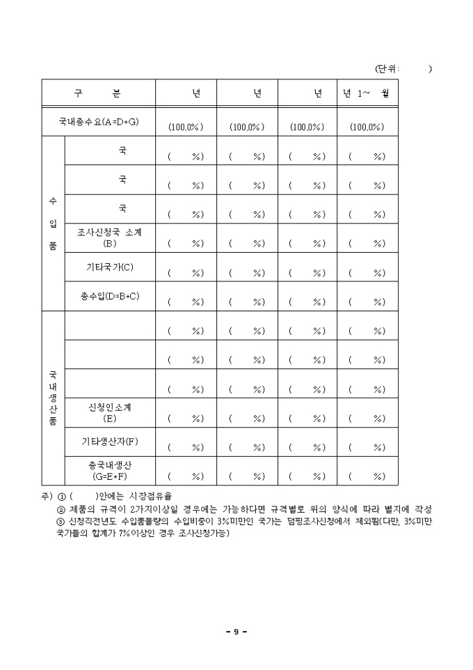9,000원/월덤핑방지 관세 및 상계 관세 부과를 위한 산업피해 조사의 신청 양식입니다.