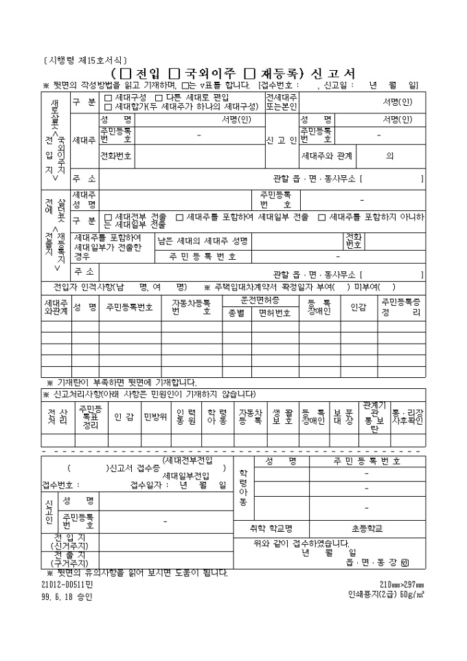9,000원/월국외 이주신고 양식입니다.