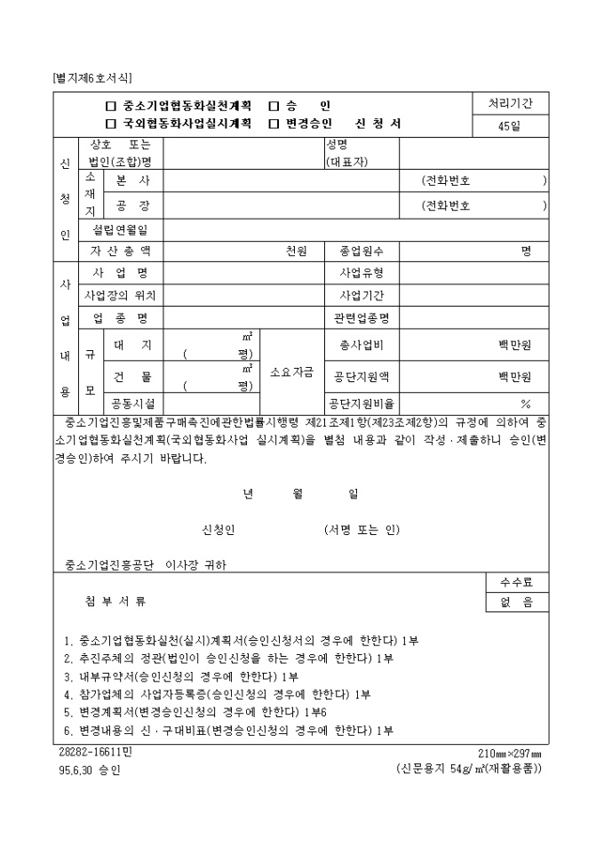 중소기업 협동화 계획 승인(변경)신청서